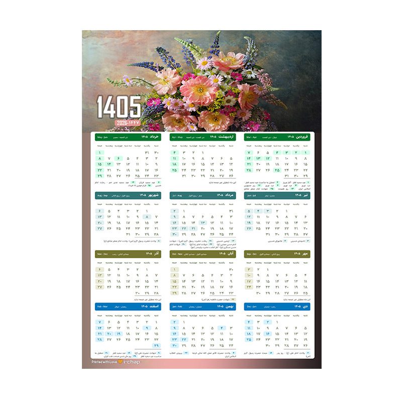 تقویم دیواری سال 1404 آی چاپ طرح کرومی کد t31