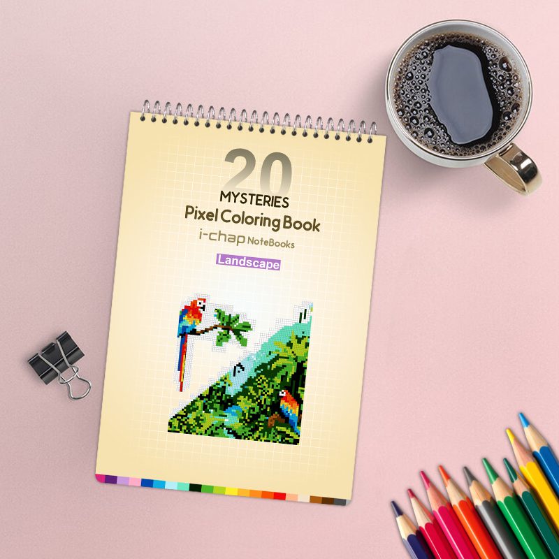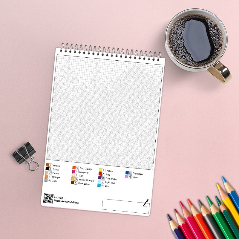 هر صفحه از این دفتر از پیکسلهای مربعی کوچولو ساخته شده که وقتی شروع به رنگآمیزیشون میکنی، کمکم یه تصویر فانتزی، بامزه و دوستداشتنی جلوی چشمت ظاهر میشه 😲✨
