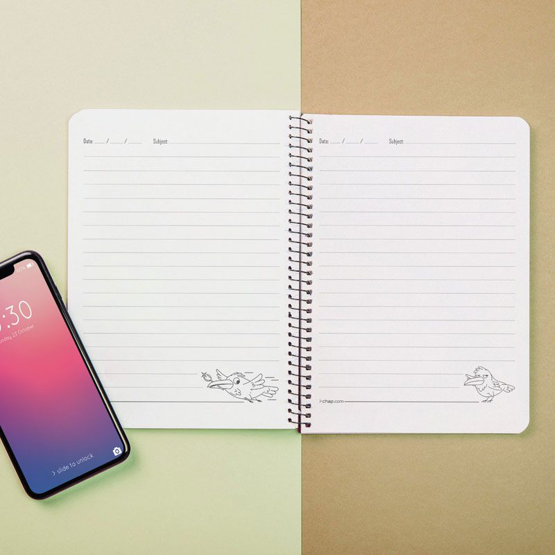 در دفتر های تولید شده توسط آی چاپ از کاغذ تحریر 80 گرم مرغوب استفاده شده است. جلد دفتر از مقوای گلاسه 200 گرم به علاوه روکش لمینت براق 150 میکرون ضد آب استفاده شده و با کیفیت فوق العاده چاپ شده است. صحافی این دفتر فنری مارپیچ از نوع فلزی با روکش پی وی سی سفید می باشد.