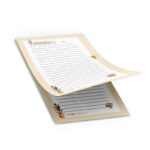 در دفتر های تولید شده توسط آی چاپ از کاغذ تحریر 80 گرم مرغوب استفاده شده است. جلد دفتر از مقوای گلاسه 200 گرم به علاوه روکش لمینت براق 150 میکرون ضد آب استفاده شده و با کیفیت فوق العاده چاپ شده است. صحافی این دفتر فنری مارپیچ از نوع فلزی با روکش پی وی سی سفید می باشد.